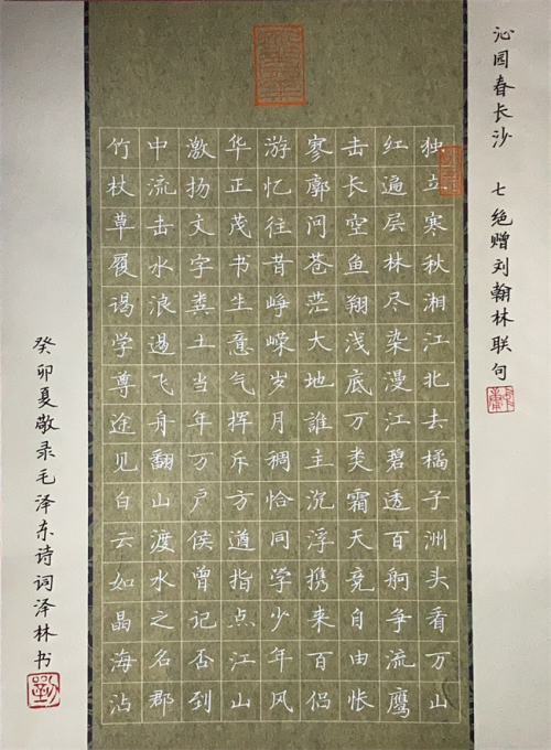 艺术设计学院学生刘泽林的书写作品《沁园春·长沙》