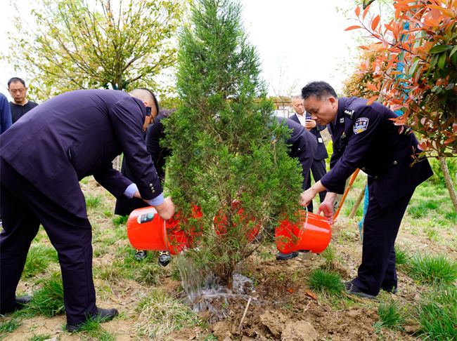 2024年4月1日,老河口市公安局民警种下一棵纪念树纪念靳斌。