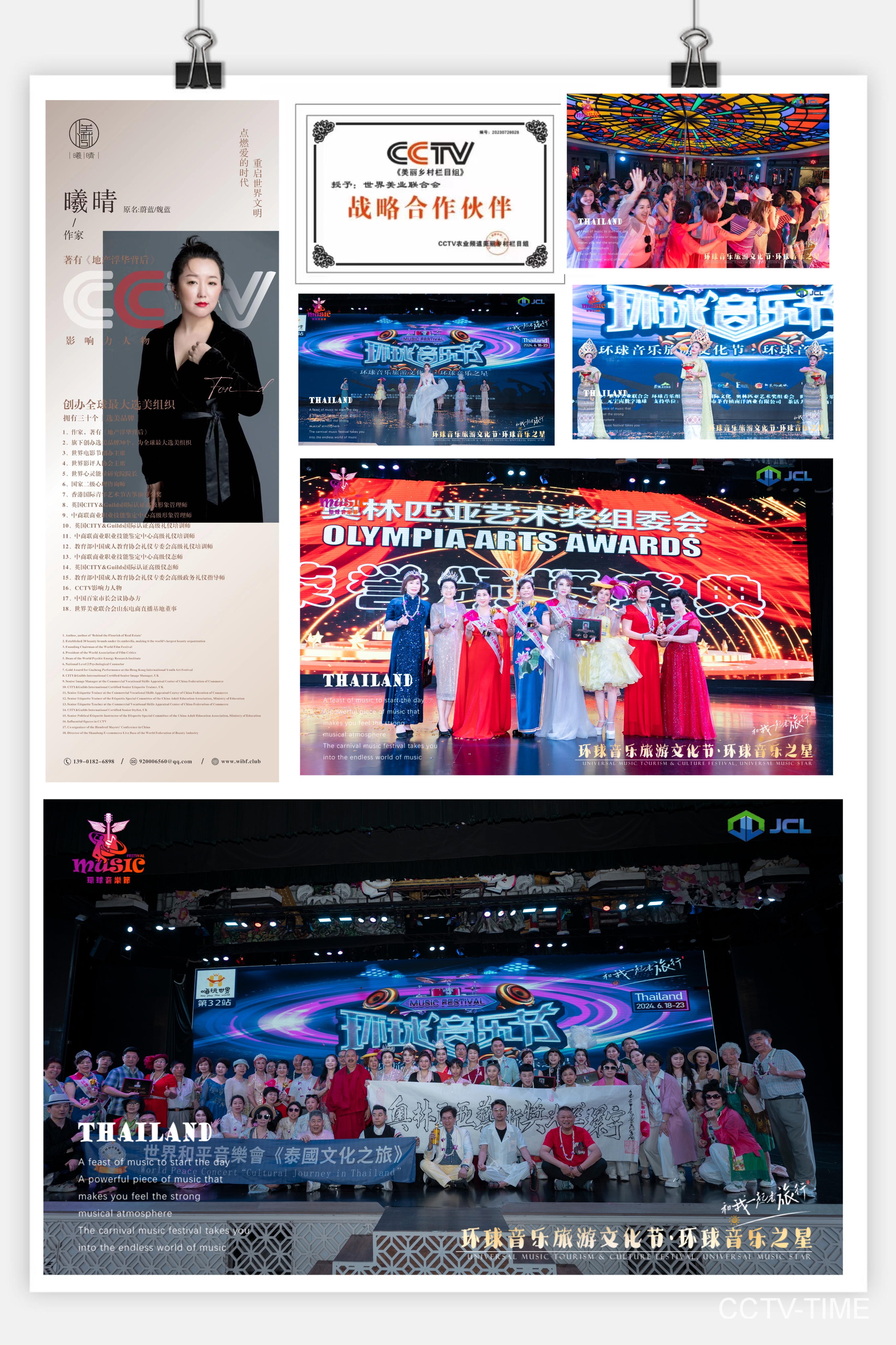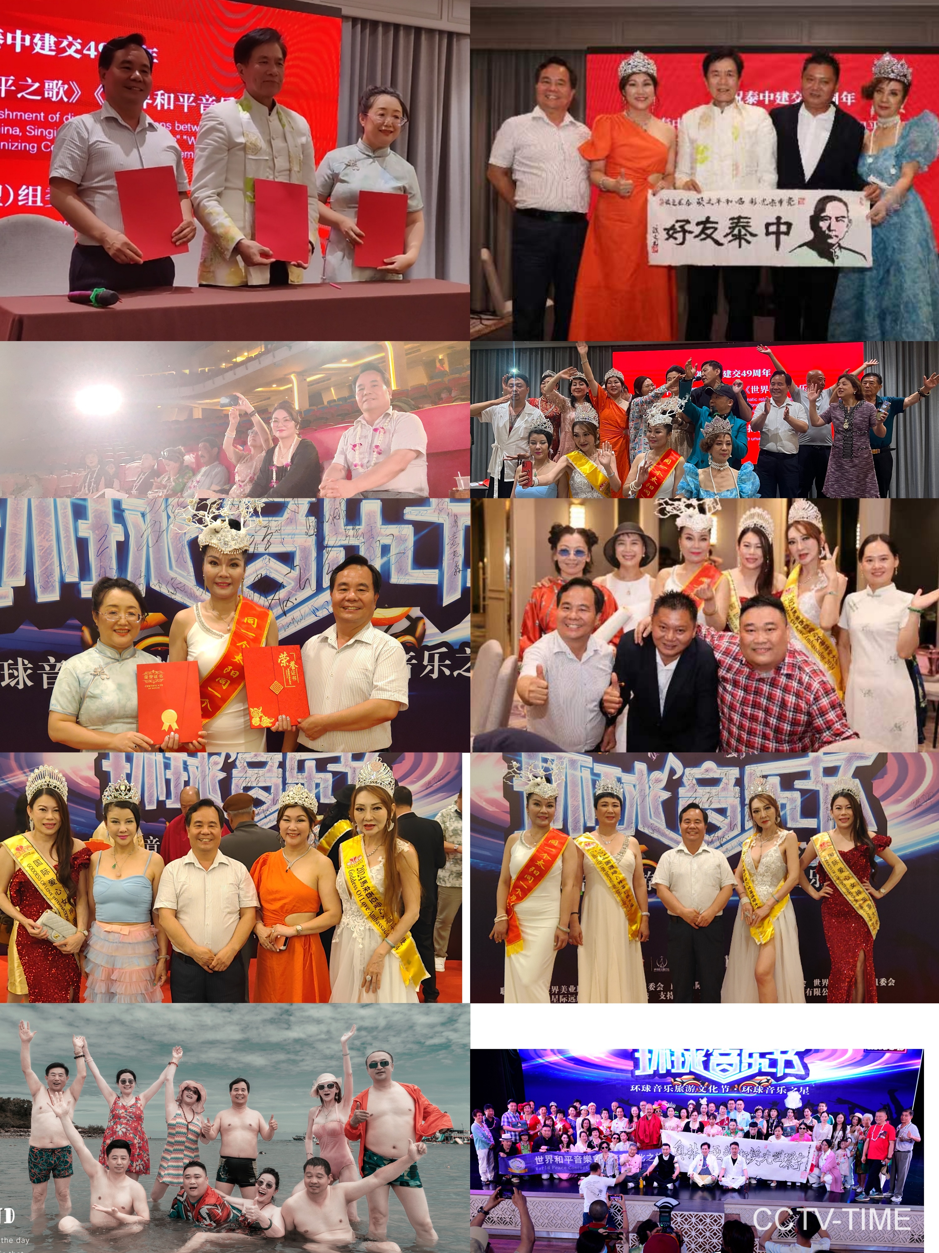 【CCTV-TIME央媒时代百城千媒报视TOP中国时代周刊中国品牌万里行时代金钻俱乐部名流名星精英会金光大道央媒网特别关注】日前,为庆祝泰中建交49周年,世界和平音乐会、环球音乐节、奥林匹亚艺术奖颁奖盛典、《唱和平之歌亮中国风采》走向世界系列活动启动仪式等相继在泰国曼谷举行。世界和平音乐会主席欧文、环球音乐节主席曦晴、奥林匹亚艺术奖主席王小瑞、全球金星奖主席林圣亿、CCTV-TIME央媒时代《金光大道》主席团主席杜平和来自中国、泰国、马来西亚、新加坡等世界各地的领导、嘉宾、艺术家参加了活动。活动结束后,与会者兴致勃勃的游览了曼谷大皇宫、芭堤雅海滩和泰国首富谢国民庄园等著名景点。