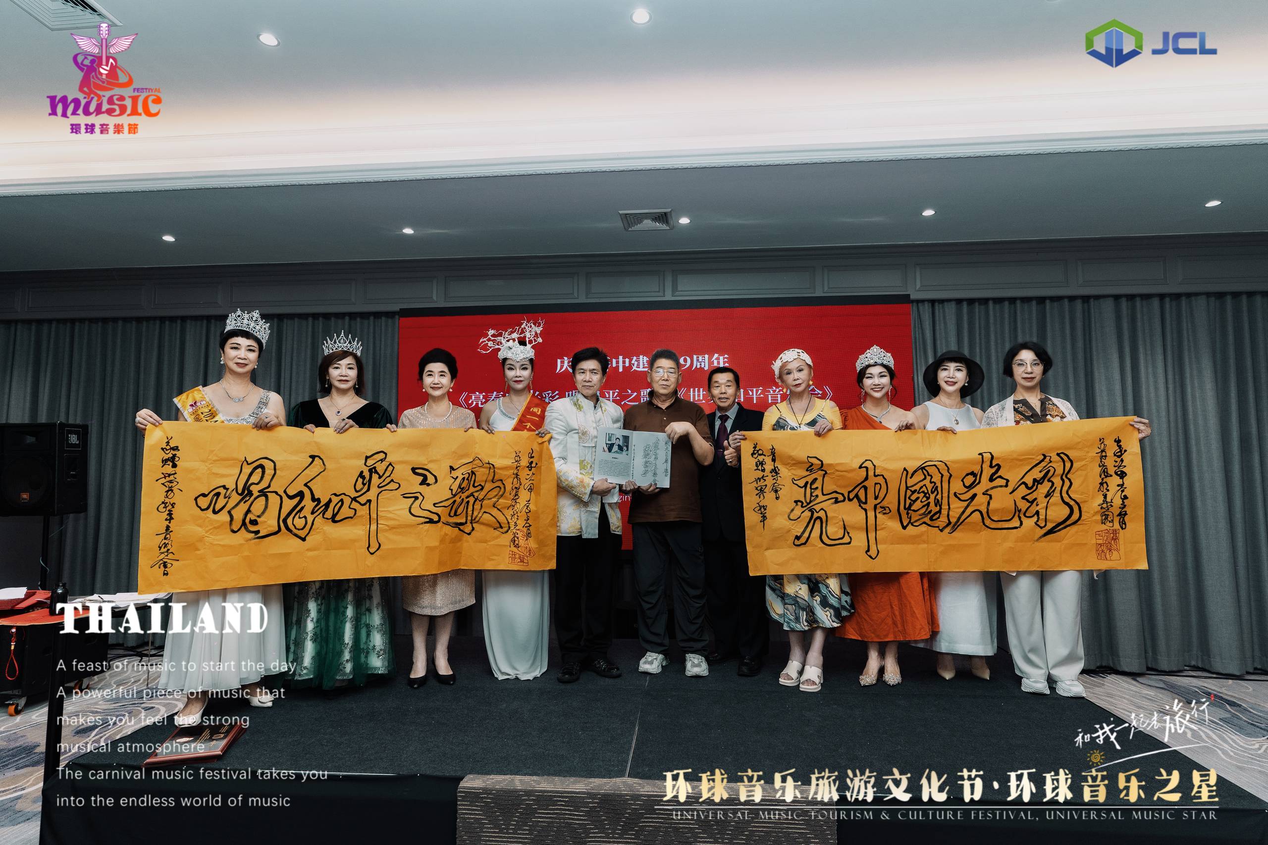 为庆祝泰中建交49周年,《世界和平音乐会》在泰国曼谷举行盛大《揭幕颁奖》宴会,中泰两国百名和平友好人士共同出席了此次盛典。