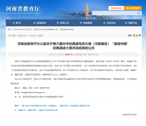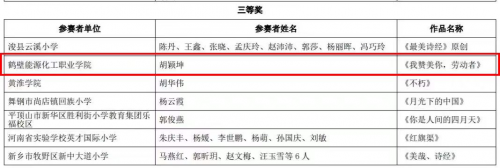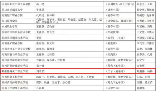 近日,河南省教育厅公布第六届中华经典诵写讲大赛(河南赛区)“诵读中国”经典诵读大赛评选结果。鹤壁能源化工职业学院两部作品《我赞美你,劳动者》和《庄子·逍遥游》均榜上有名。