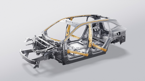 极氪7x在a柱和上边梁上部应用2000兆帕一体成型热气胀钢柱,此前强度高的钢很难成型,强度至高达到1500兆帕、尺寸精度低。此次和和供应商一起开发的全新工艺:电阻加热、高压气胀、模具冷却的方式将热气胀钢的长度达到2.35米,强度达到了2000MPa的强度。这是一种在高温高压条件下成型冷却淬火的马氏体超高强度钢材,抗压能力极强。